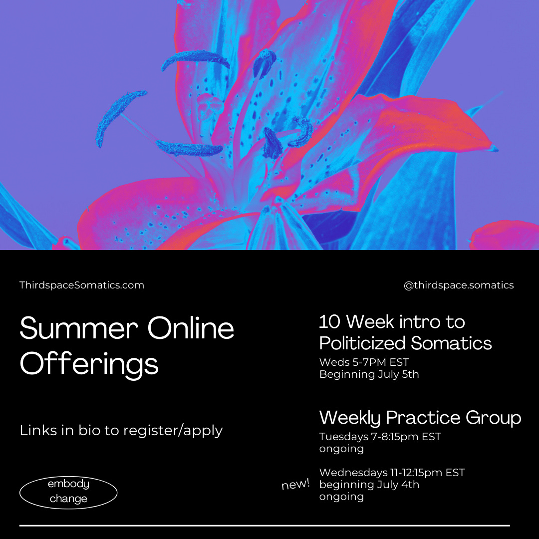 I’m still enrolling for the summer cohort of the 10 Week Intro to Politicized Somatics. Are you curious about it but want to know more?